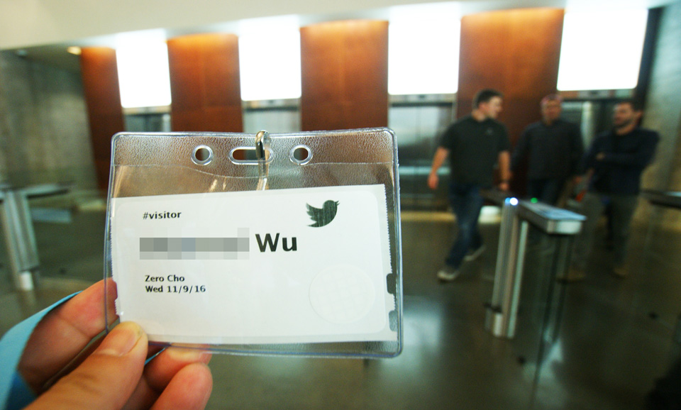 Twitter總部位於舊金山市中心Market Street 1355號,搭叮噹車就可以到。要進入Twitter總部需要有人邀請,剛好粉絲團熱情網友知道小編在舊金山,就以員工身分發訪客邀請,所以進入總部之前,先刷一下護照,機器就會印出訪客證,有了訪客證,進出各樓層、各部門、員工餐廳就能通行無阻。