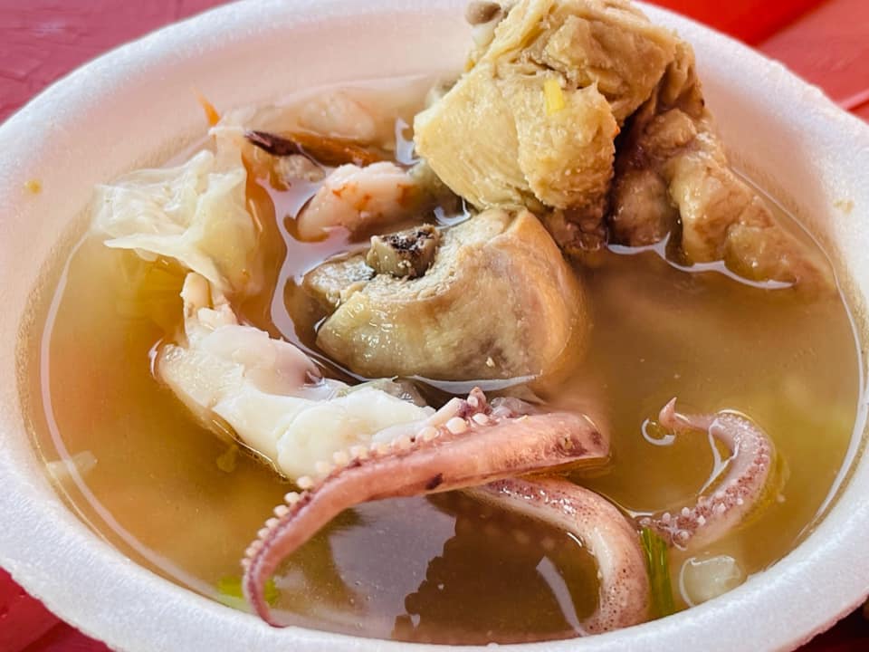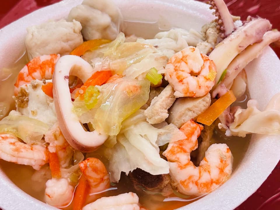 小琉球迎王期間,很多據點都提供「飯湯」讓遊客免費吃,而且料理頗澎湃:鮮蝦、魚丸、魷魚、燉雞,豐盛到一種極致。