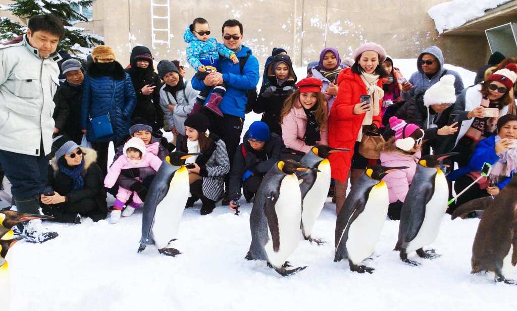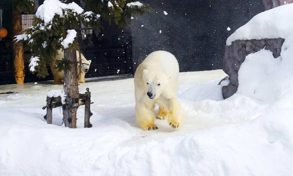 旭川市旭山動物園(Asahiyama Zoo)冬季最有看頭的是企鵝逛大街、北極熊在雪地行走。