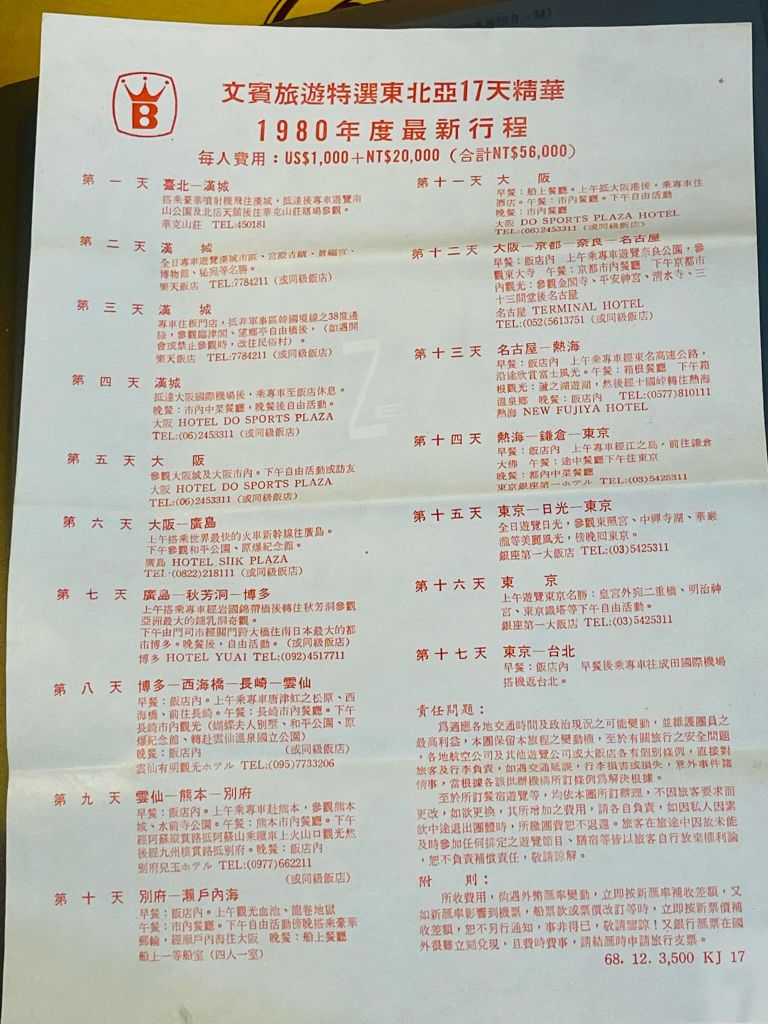 那個剛開放出國的年代,一趟東北亞的行程就是17天:先去首爾玩四天三夜後飛大阪,接著搭新幹線
