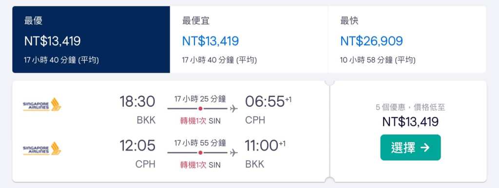去程:2022/10/15、回程2022/10/22(以相同日期為例)