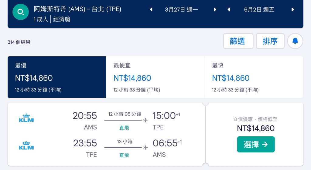 這種倒著飛、票期長的機票,可以讓你每三、四個月就可以去歐洲玩一趟,一直無限循環下去![]()