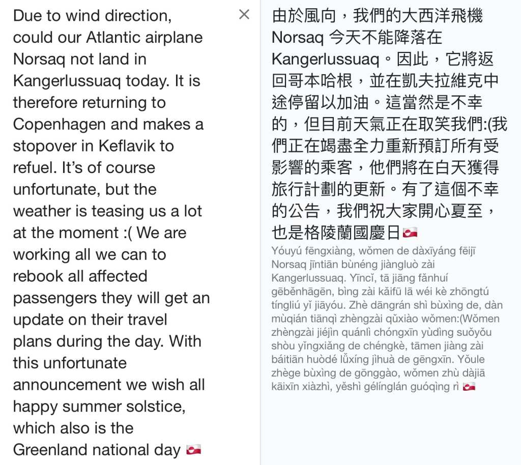 照理說夏天的季節,格陵蘭的天候狀況會較佳,但很不巧的是今天從哥本哈根飛往 Kangerlussaq(SFJ)機場的這架A330-200,因為天候不佳,原機折返哥本哈根。