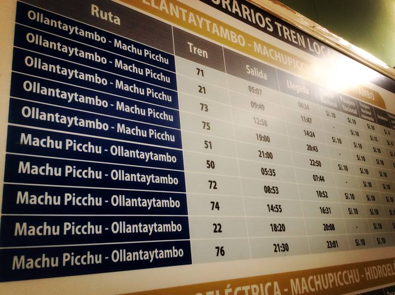 下列這張票價表是祕魯本國人票價,從O站到熱水鎮單程只要10披索(相當台幣100),我當下眼珠子差點沒掉下來!我連問了好幾個站務人員,很抱歉,購票一律憑身分證件實名購票,外國人完全沒有機會搭乘便宜的本國列車。