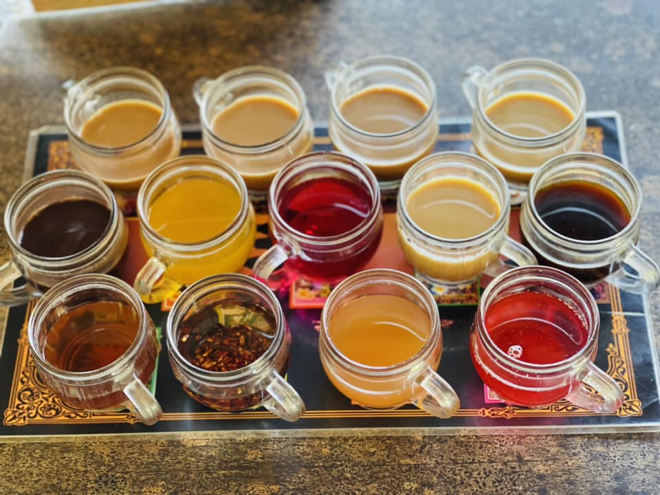 香草咖啡、椰子咖啡、峇里島咖啡、人參咖啡、摩卡、酪梨、藏花紅茶、薑茶、檸檬茶、紅米茶、山竹茶、熱可可、洛神花茶,一次13杯飲料試喝,嗅覺與味覺大考驗❗️