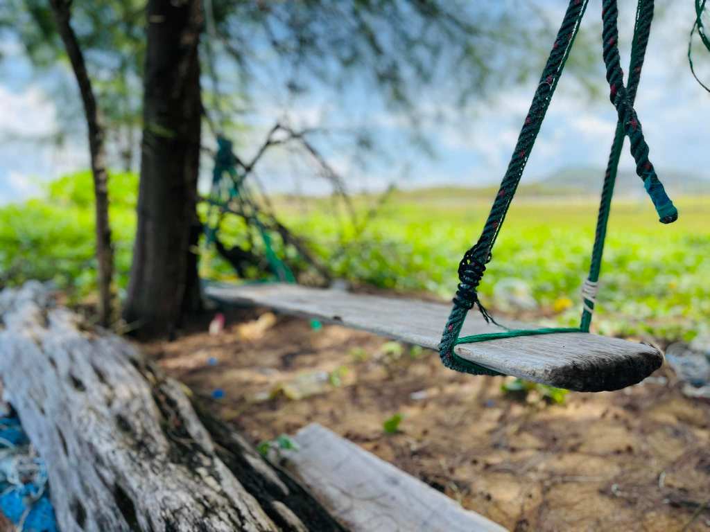 奈揚沙灘比聖馬丁島更舒適的是這邊有大片防風林,防風林樹下有盪鞦韆,完全不會曬到太陽,海風吹拂超舒服。