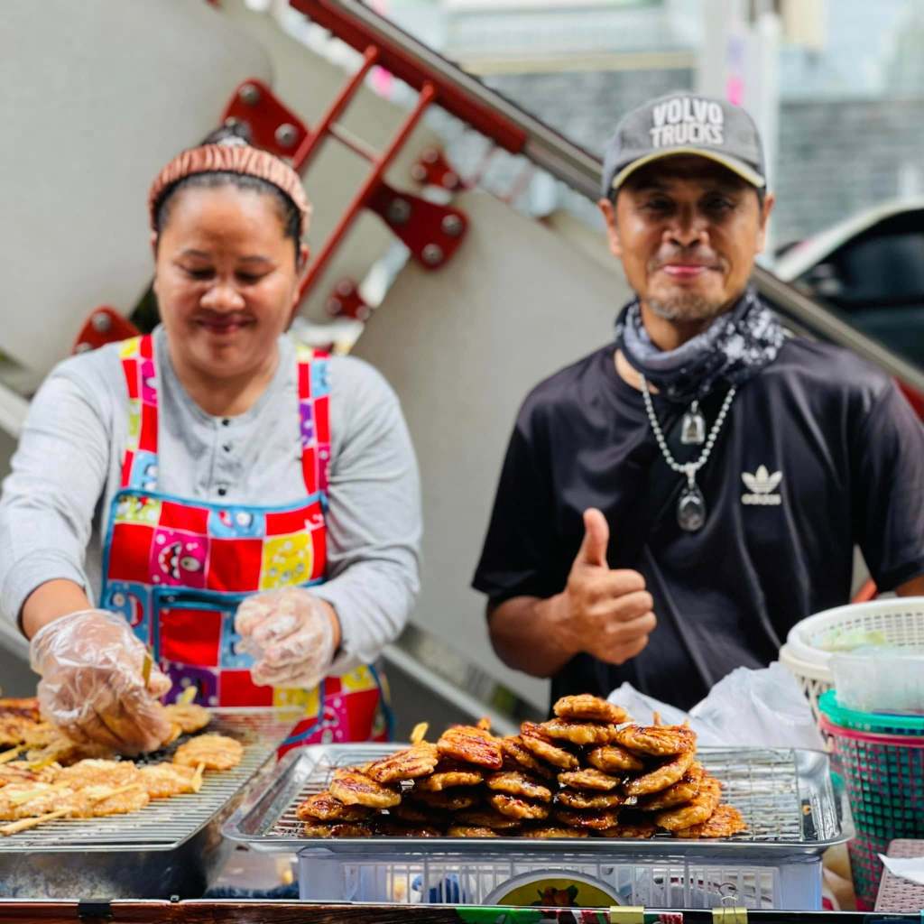 Siam Square的早市攤販一攤又一攤,是覓食好所在:兩包糯米飯、兩支肉串只要34泰銖,這是我熟悉的曼谷的味道😋