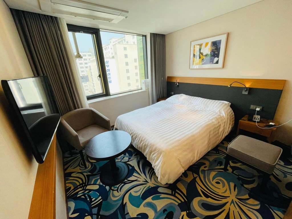 這次在濟州島住這家 SHINSHIN HOTEL,屬於市中心的商務旅遊,有著無敵窗景,可以看見遠處機場塔台、飛機起飛🛫️