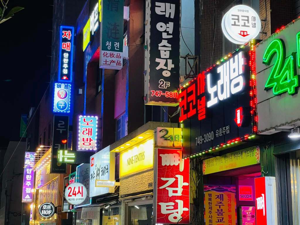 濟州島市區感覺跟沖繩的國際通很像,招牌霓虹燈熱鬧得很,生活機能完全不是問題。如果有訂 Klook 一日遊行程,告知住哪一家旅館,當天直接來接,很方便❗️