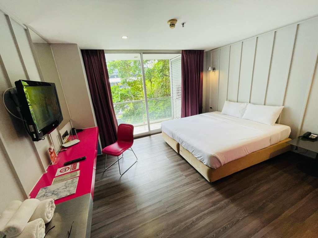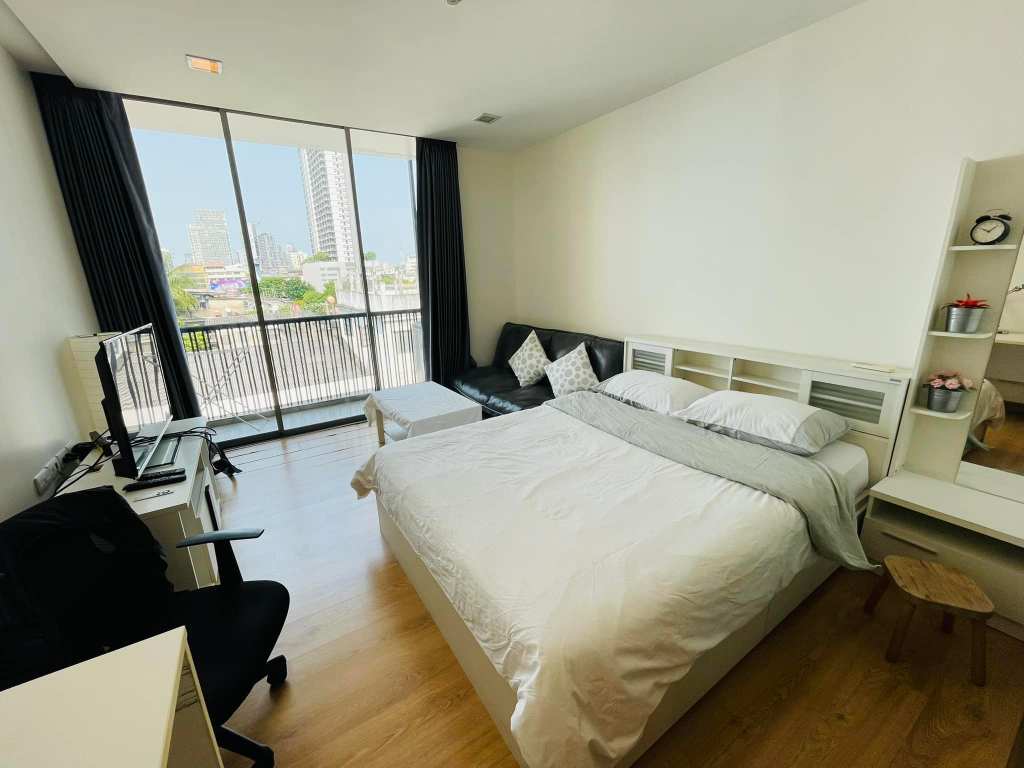 落地窗可以看著BTS Chong Nonsi 人來人往的的景象,房間內部寬敞、乾淨。