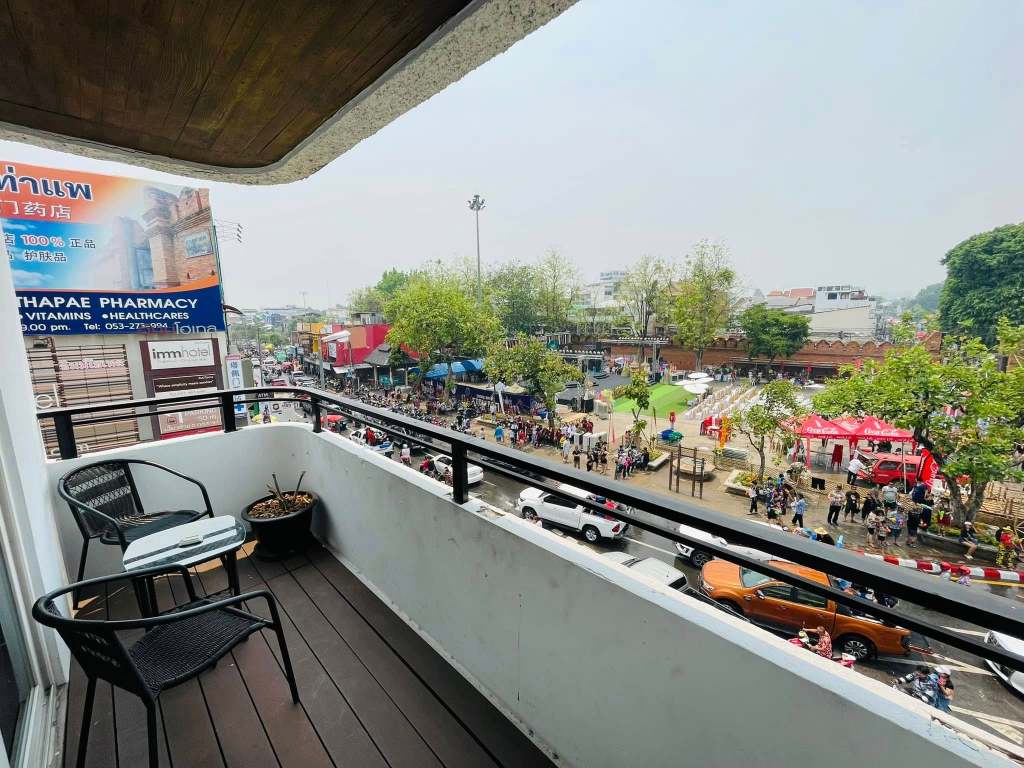 潑水節來清邁的話,當然是住塔佩門第一排有陽台景觀的旅館,因為所有的活動都是以塔佩門為中心,從陽台就能看到戶外人潮的一舉一動。