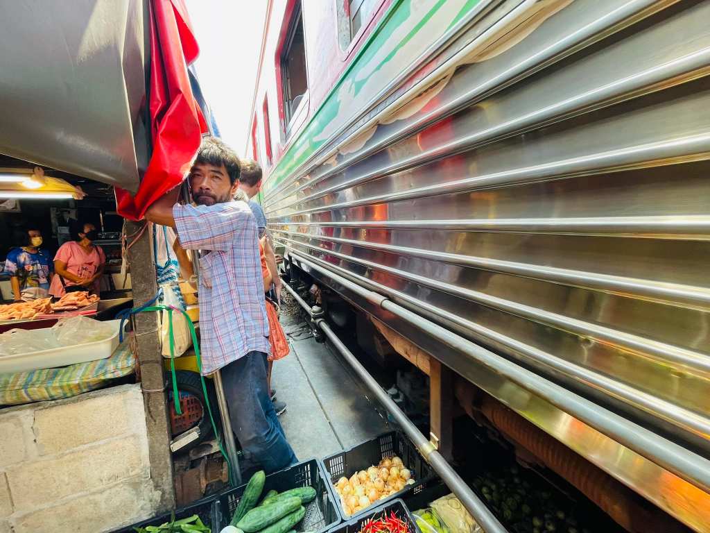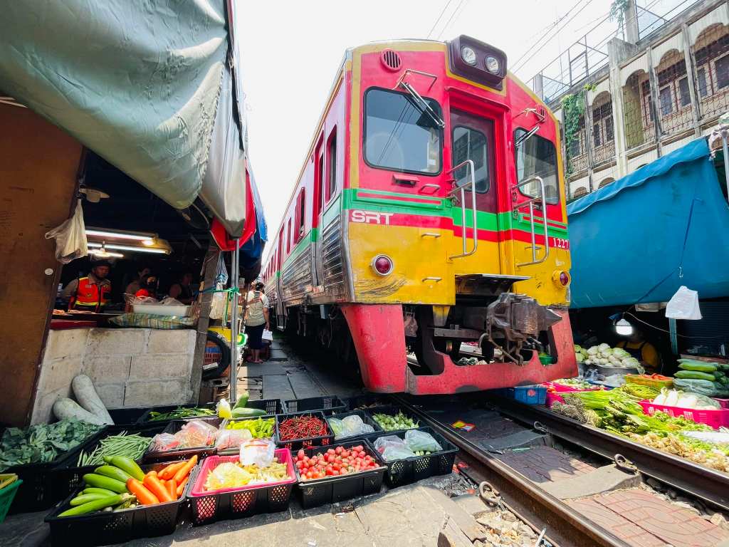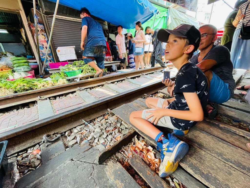 美功鐵道班次間隔很久,跟一日遊的好處就是領隊會安排在最剛好的時段抵達,不用在35度的高溫下苦苦等待或擔心錯過。