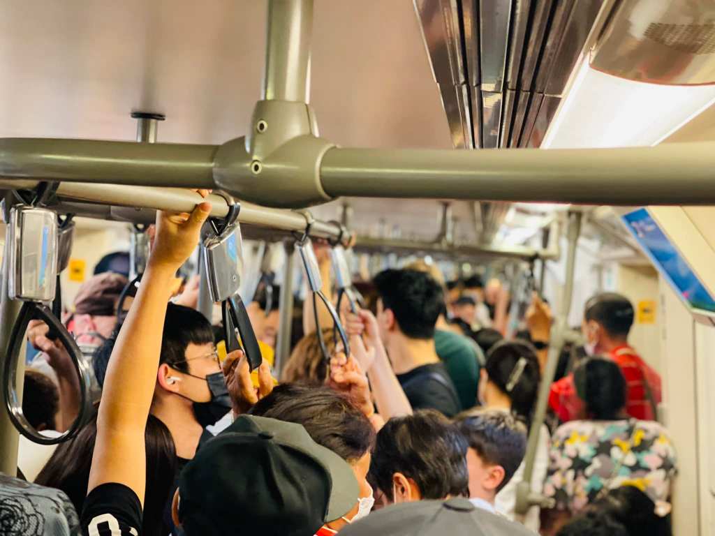 曼谷BTS รถไฟฟ้าบีทีเอส 一到週末就大爆滿,從Siam到末站Mo Chit都是這樣擠沙丁魚的景象![]()