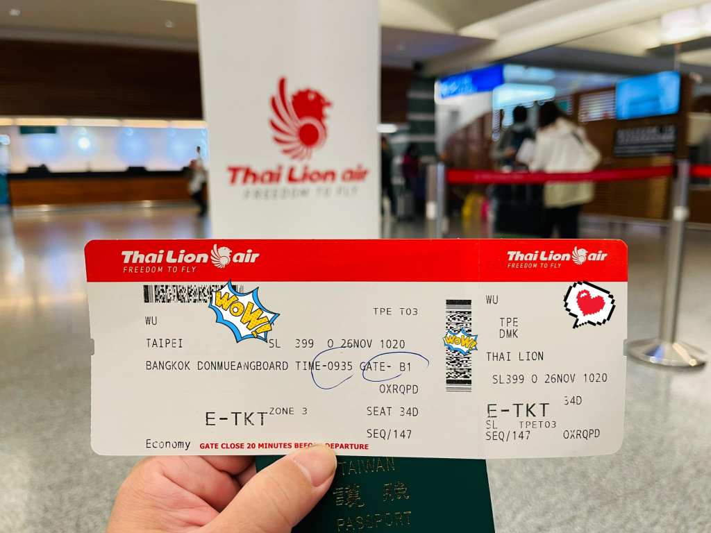 這張泰獅航 Lion Air Group Taiwan 台北-曼谷單程2K的機票,是今年六月促銷時買的,真的是便宜❗️10:20桃園機場起飛,13:10抵達廊曼機場,拼下午三點入住旅館😄