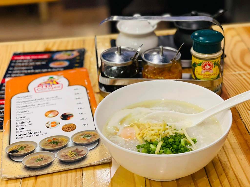 午餐:豬肉粥 45 baht + 一顆蛋10 baht