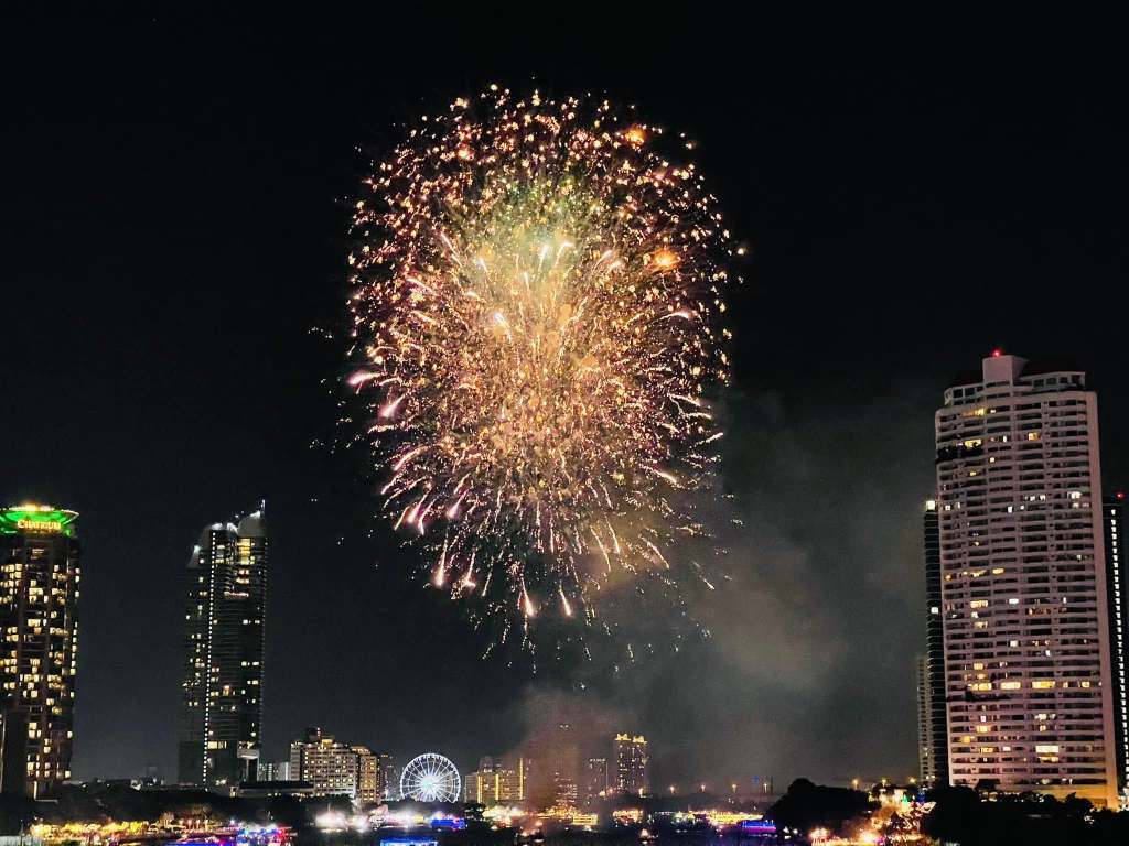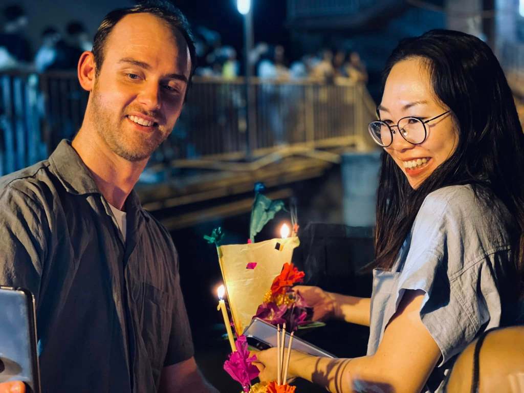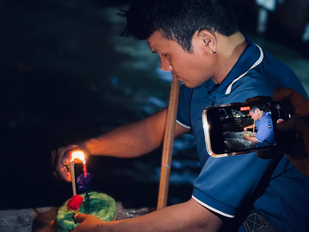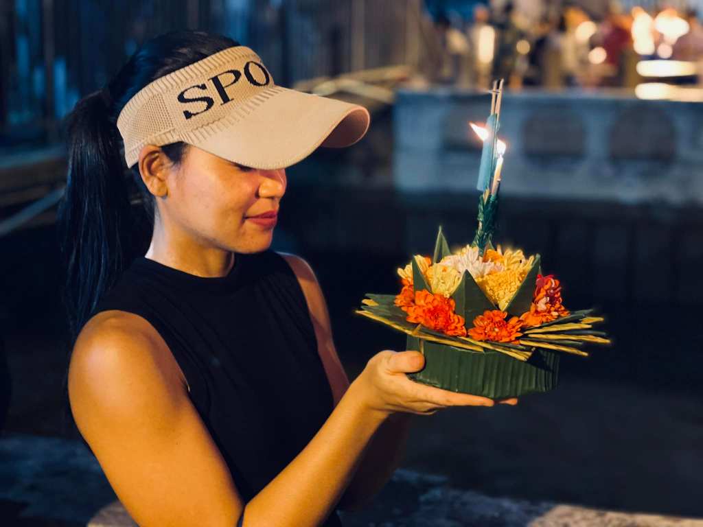 捷運站走出來其實有一個制高點,站在制高點反而看見完整的煙火秀;在昭披耶河河畔,本地的居民和觀光客人手捧著芭蕉葉做成的蓮花燈緩緩放水流,很有儀式感。