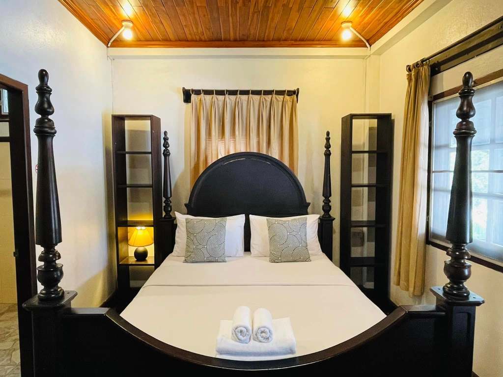 整棟黑白色系的木造建築、和對面的紅寺成為鮮明的對比,房間寢具很典雅、很龍坡邦的感覺🥰