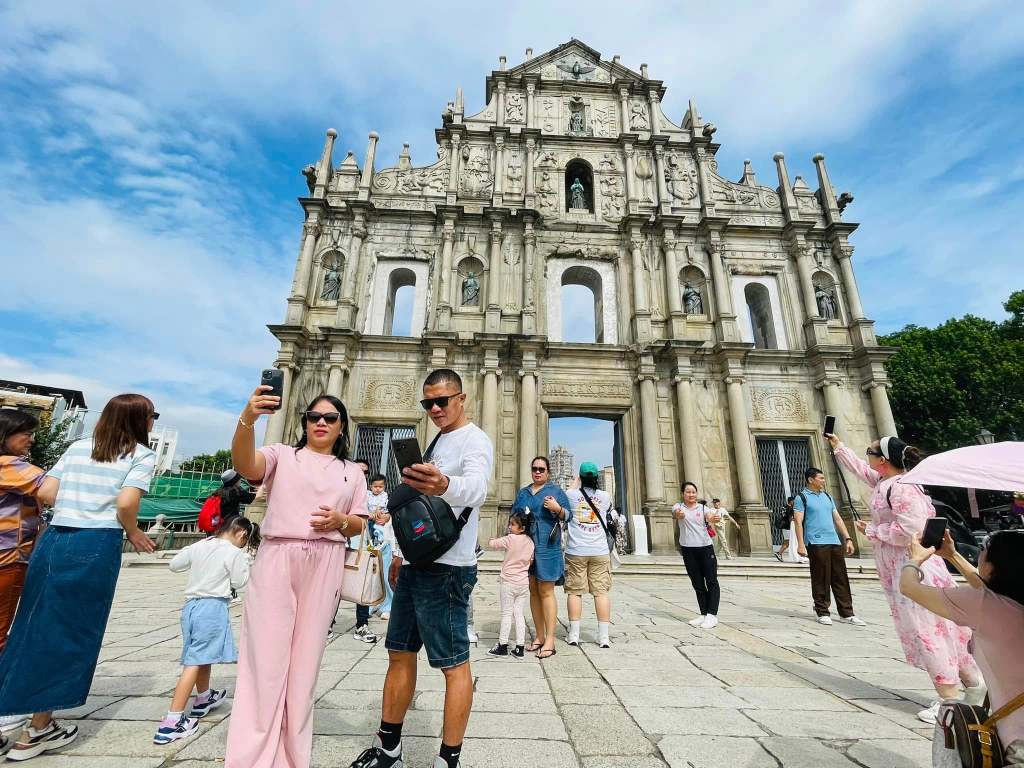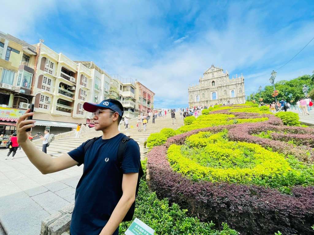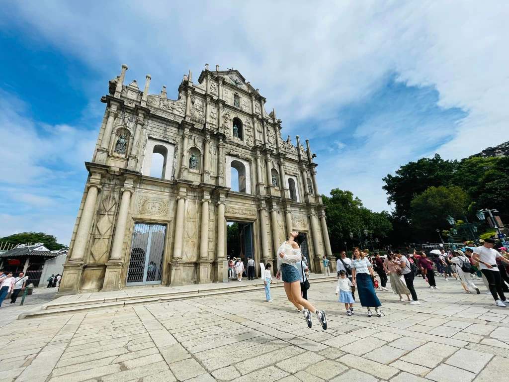 澳門今天難得好天氣,天空很藍、很美麗❗️大三巴牌坊也是人來熙攘,來到大三巴要先想好要擺什麼pose,留下一個在澳門的美好回憶。