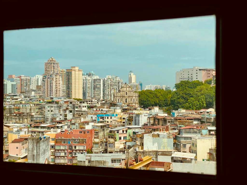 房間書桌的窗景看出去就是大三巴牌坊,這等於一天24小時、時時刻刻享受澳門的地標景緻,如果不幸住到另一邊的房間,就沒有這樣的view了。